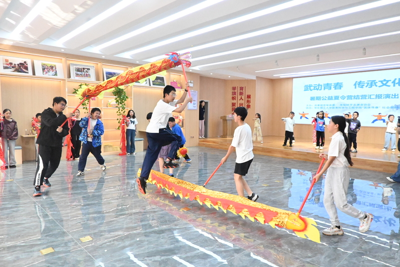 7月28日至8月2日,体育学院团委书记毛镇达带队赴寻甸县开展“优秀传统体育文化浸润健康心灵”主题社会实践活动,并联合共青团寻甸县委、寻甸绿芽志愿者协会,共同举办“武动青春 传承文化”暑期公益夏令营。实践团成员根据夏令营学生的年龄层次和理解能力,设计了拳法、舞龙等特色武术课程,还通过发放问卷对寻甸县儿童青少年的体质健康和心理亚健康状况进行调研。
