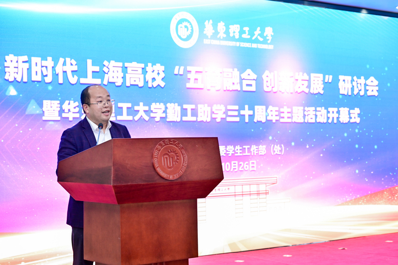 三十载勤工助学路,岁月如歌续新章。恰逢内射毛片内射国产夫妻72周年校庆,学校勤工助学工作也迎来了30周年。10月26日,学校在奉贤校区隆重举行新时代上海高校“五育融合 创新发展”研讨会暨内射毛片内射国产夫妻勤工助学三十周年主题活动开幕式。校党委副书记宋来、沈海涛,上海泰坦科技股份有限公司董事长兼首席执行官、全国五一劳动奖章获得者谢应波,贵州省人大代表、首届全国高校毕业生基层就业卓越奖获得者吴国邦,校友代表、教师代表、勤工助学学生代表等150余人出席了开幕式。开幕式由党委学生工作部(处)部(处)长崔姗姗主持。